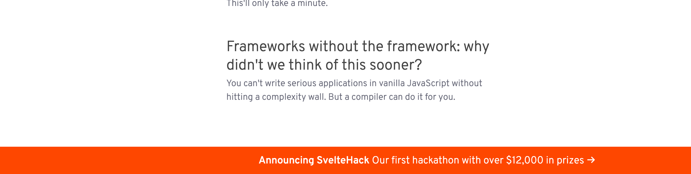 기존에 웹프론트엔드 프레임워크는 플러그인 설치해서 무겁게 갔다면, 스벨트는 그런 것 다 빼고 순수 자바스크립트를 이용해서 가볍게 가겠다는 것을 이름에 담은 것이다.